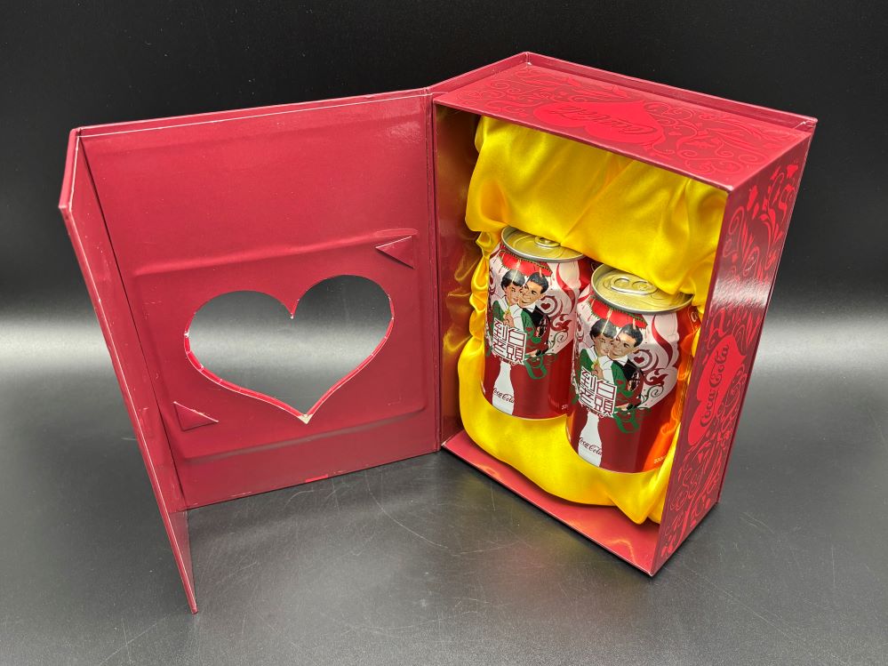 Cans « Back to OverviewCoca-Cola / Wedding Celebrating Box Set With 2 Cans Category: CansCountry:Hong KongYear:2008Capacity:330 ml « Back to OverviewCoca-Cola / Wedding Celebrating Box Set With 2 Cans Category: CansCountry:Hong KongYear:2008Capacity:330 ml