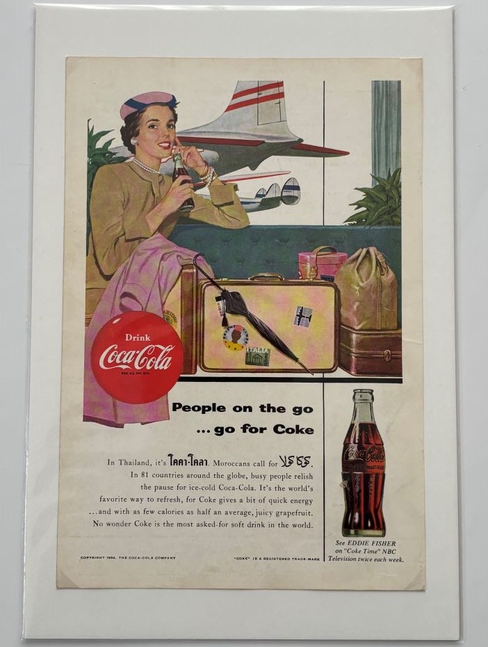 Cardboards & Paper Ads « Back to OverviewCoca-Cola / People On The Go...Go For Coke / Magazine Ad / NGM Category: Cardboards & Paper AdsCountry:USAYear:1954Capacity:25,3 x 17,1 cmDescription:National Geographic Magazine « Back to OverviewCoca-Cola / People On The Go...Go For Coke / Magazine Ad / NGM Category: Cardboards & Paper AdsCountry:USAYear:1954Capacity:25,3 x 17,1 cmDescription:National Geographic Magazine