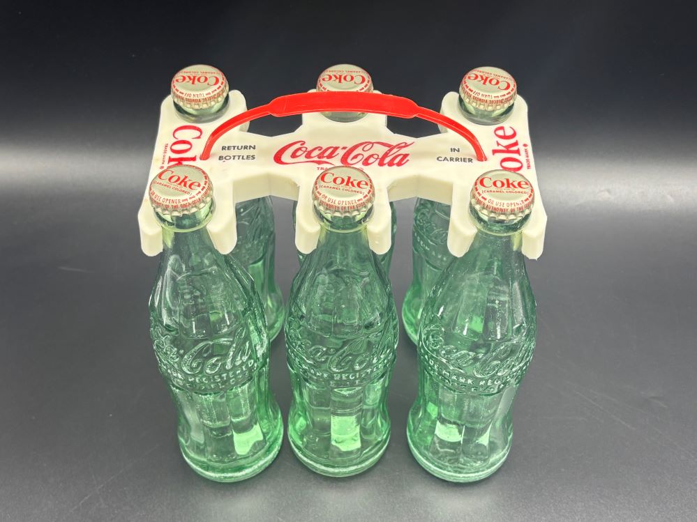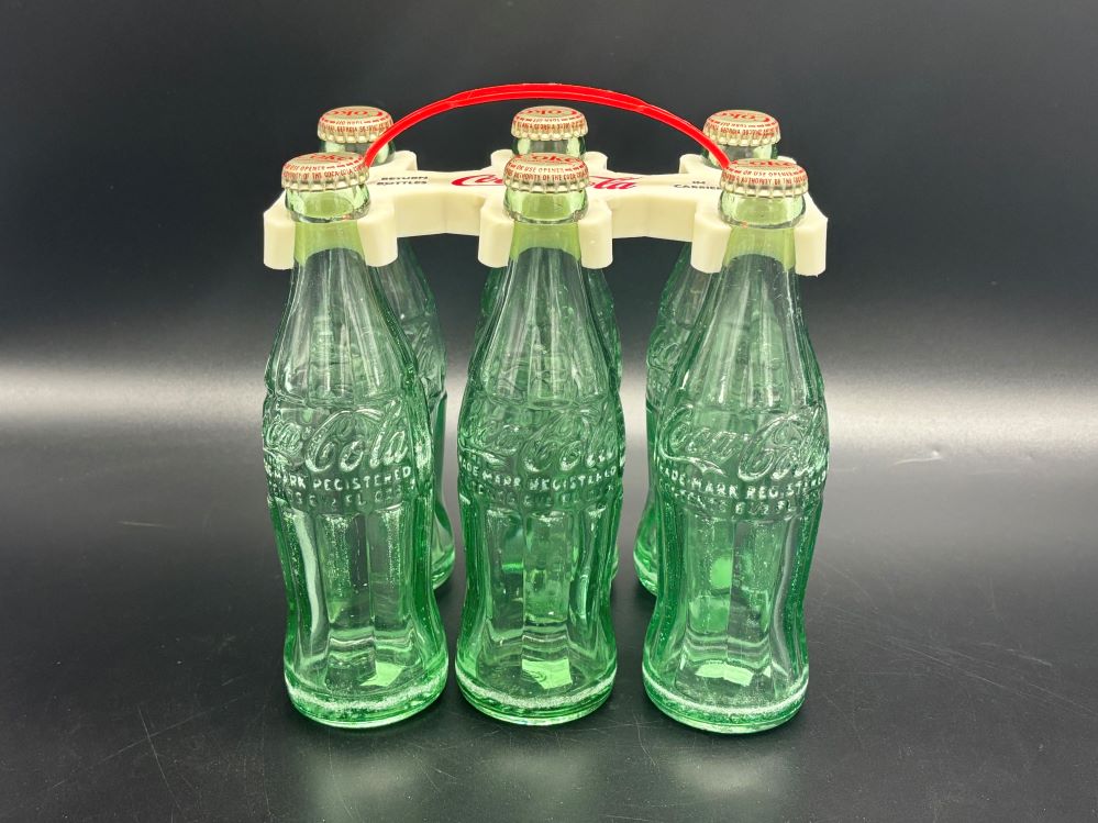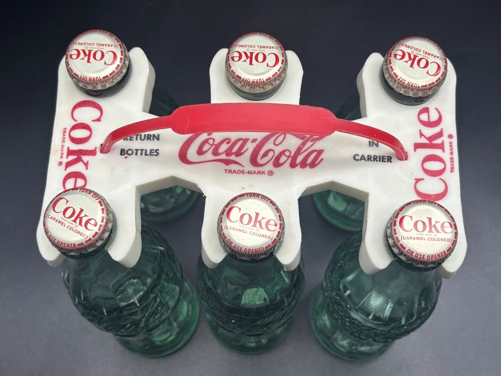 Crates & Carriers « Back to OverviewCoca-Cola / Plastic Bottle Carrier / Hanging Bottles/ 6 Bottles Category: Crates & CarriersCountry:USAYear:1960sCapacity:6 1/2 FL. OZS.Description:6 1/2 FL. OZS bottles from 1963 - 1965 « Back to OverviewCoca-Cola / Plastic Bottle Carrier / Hanging Bottles/ 6 Bottles Category: Crates & CarriersCountry:USAYear:1960sCapacity:6 1/2 FL. OZS.Description:6 1/2 FL. OZS bottles from 1963 - 1965