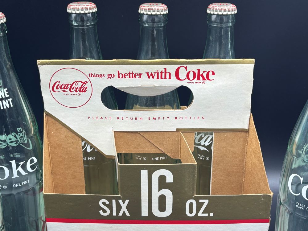 Crates & Carriers « Back to OverviewCoca-Cola / 6 Pack / One Pint / Thing's Go Better With Coke Category: Crates & CarriersCountry:USAYear:1960sCapacity:One PintDescription:ACL Bottles One Pint 16 FL.OZ., 1965 - 1968 « Back to OverviewCoca-Cola / 6 Pack / One Pint / Thing's Go Better With Coke Category: Crates & CarriersCountry:USAYear:1960sCapacity:One PintDescription:ACL Bottles One Pint 16 FL.OZ., 1965 - 1968