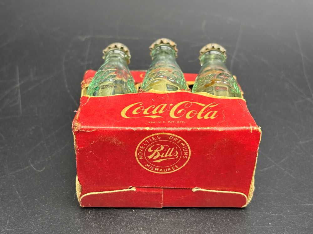 Mini Bottles « Back to OverviewCoca-Cola / Mini Bottles / 6 Pack Paper Carrier / Bill's Milwaukee / Metal Handle Category: Mini BottlesCountry:USAYear:1940sCapacity:6,5 x 4 x 6 cm « Back to OverviewCoca-Cola / Mini Bottles / 6 Pack Paper Carrier / Bill's Milwaukee / Metal Handle Category: Mini BottlesCountry:USAYear:1940sCapacity:6,5 x 4 x 6 cm