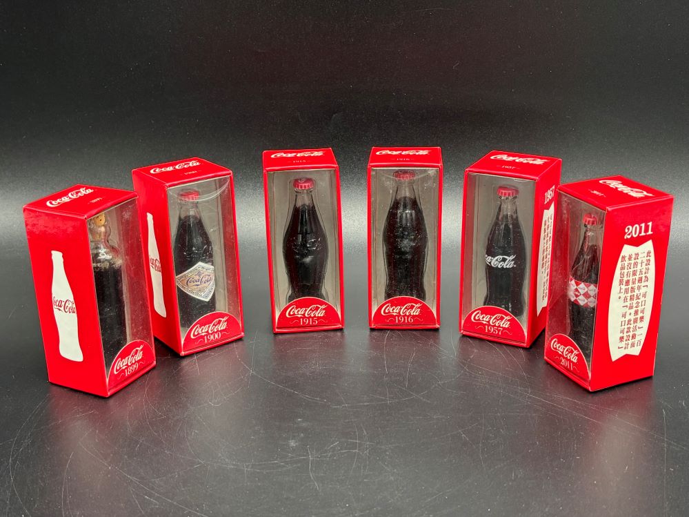 Mini Bottles « Back to OverviewCoca-Cola / 1899 - 2011 Mini Bottles / Set Of 6 Category: Mini BottlesCountry:Hong KongYear:2011Capacity:10 cm « Back to OverviewCoca-Cola / 1899 - 2011 Mini Bottles / Set Of 6 Category: Mini BottlesCountry:Hong KongYear:2011Capacity:10 cm