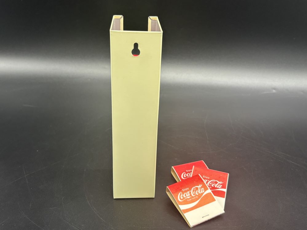 Other Collection Items « Back to OverviewCoca-Cola / Matchbook Holder Metal Category: Other Collection ItemsCountry:USAYear:1950sCapacity:4 x 17 x 5 cmDescription:Information: the matchbooks in the holder are not the original ones from the 1950s « Back to OverviewCoca-Cola / Matchbook Holder Metal Category: Other Collection ItemsCountry:USAYear:1950sCapacity:4 x 17 x 5 cmDescription:Information: the matchbooks in the holder are not the original ones from the 1950s