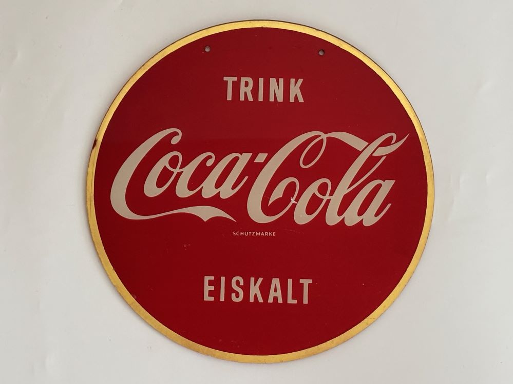 Signs « Back to OverviewCoca-Cola / Trink Coca-Cola Eiskalt / Glass Sign Category: SignsCountry:GermanyYear:1960sCapacity:25 cmDescription:different font, 2 holes for hanging « Back to OverviewCoca-Cola / Trink Coca-Cola Eiskalt / Glass Sign Category: SignsCountry:GermanyYear:1960sCapacity:25 cmDescription:different font, 2 holes for hanging