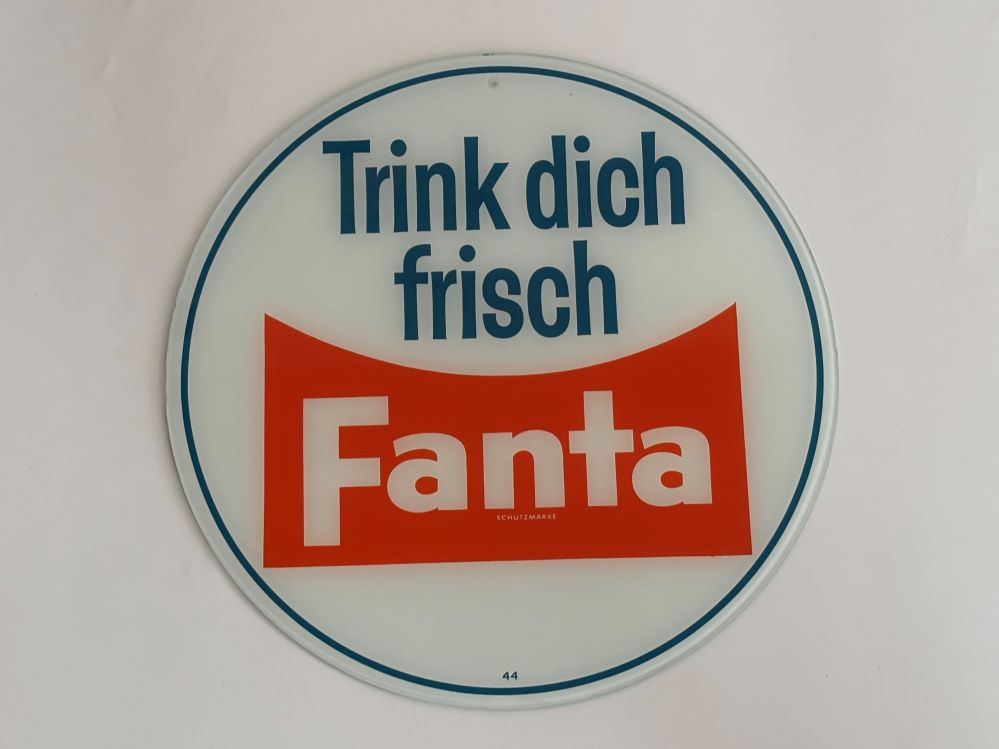 Signs « Back to OverviewFanta / Trink Dich Frisch / 44 / Glass Sign Category: SignsCountry:GermanyYear:1960sCapacity:25 cmDescription:Number 44 at the bottom, 1 hole for hanging « Back to OverviewFanta / Trink Dich Frisch / 44 / Glass Sign Category: SignsCountry:GermanyYear:1960sCapacity:25 cmDescription:Number 44 at the bottom, 1 hole for hanging