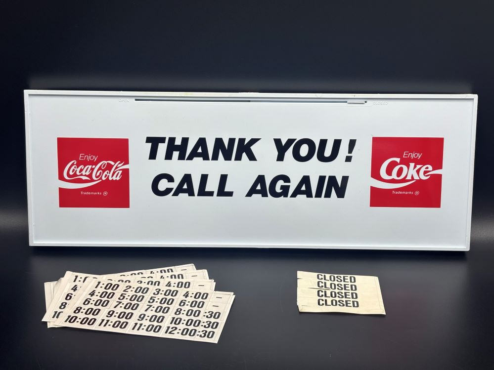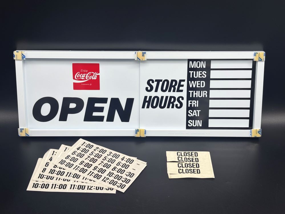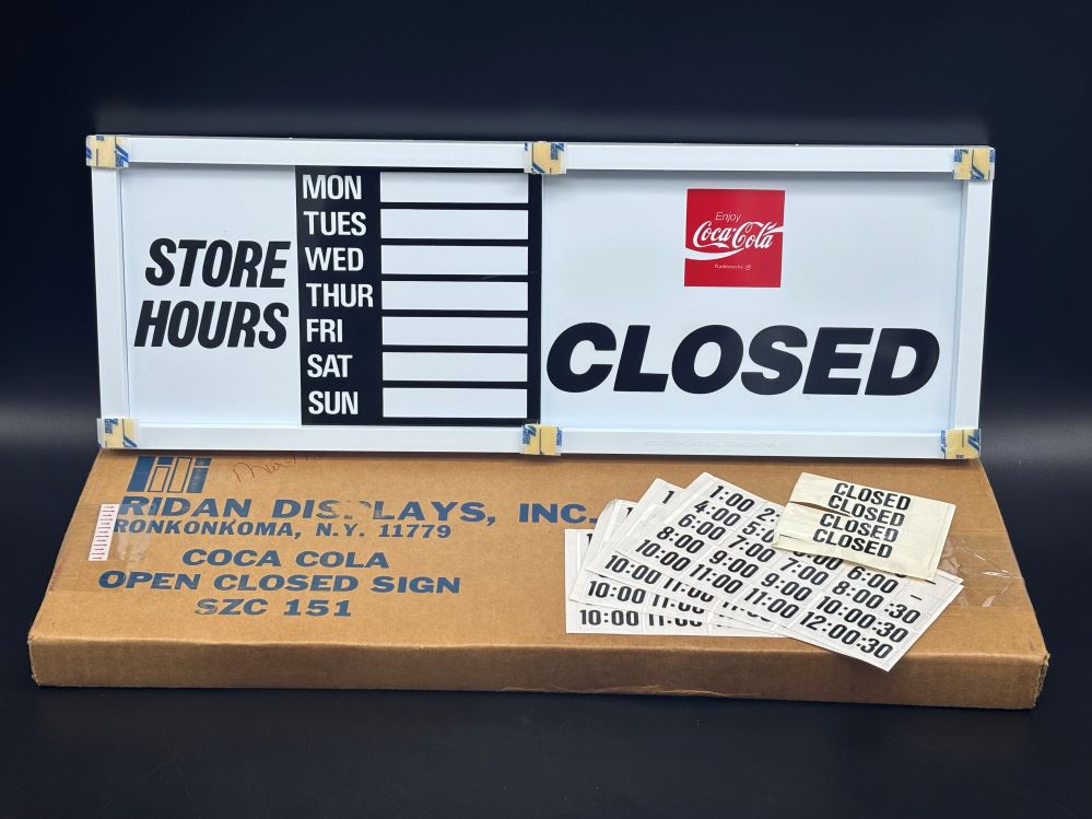 Signs « Back to OverviewCoca-Cola / Open Closed Sign Category: SignsCountry:USAYear:1980sCapacity:48 x 17 x 1,5 cm « Back to OverviewCoca-Cola / Open Closed Sign Category: SignsCountry:USAYear:1980sCapacity:48 x 17 x 1,5 cm